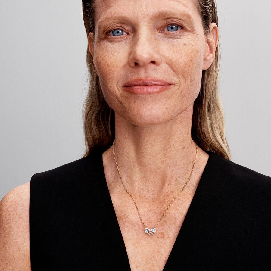 Ist ein Look ohne Schleife überhaupt ein richtiger Look? Diese Schleife hier besteht aus funkelnden Cubic Zirkonia, die das vergoldete schleifenförmige Mittelstück zieren, das wiederum an einer verstellbaren Kette befestigt ist. Die Steine wurden speziell geschliffen, damit sie eine perfekte Schleife ergeben, die all deinen Looks das gewisse Etwas verleihen. Trage diese Collier-Halskette selbst, wenn du festliches Funkeln in deinen Look bringen willst, oder verpacke sie mit Liebe für jemanden, der ganz oben auf deiner Geschenkeliste steht.