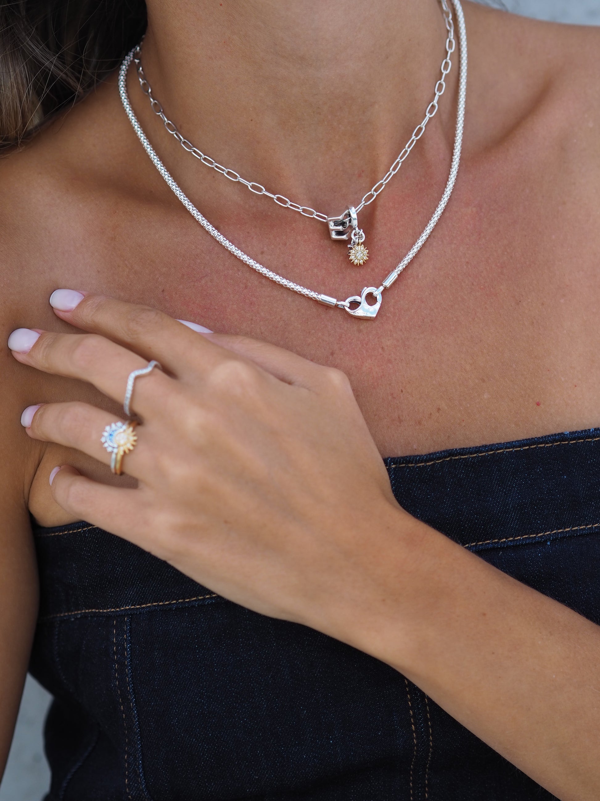 Die Pandora Gliederhalskette ist aus 925/- Sterling- Silber gefertigt und hat eine Länge von 50cm. Erzähle deine Geschichte und kreiere deine Persöhnliche Kette.
